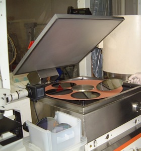 Our clean rooms house 5 sputtering systems with load locks and an e-gun evaporation system with a 4-pocket hearth.